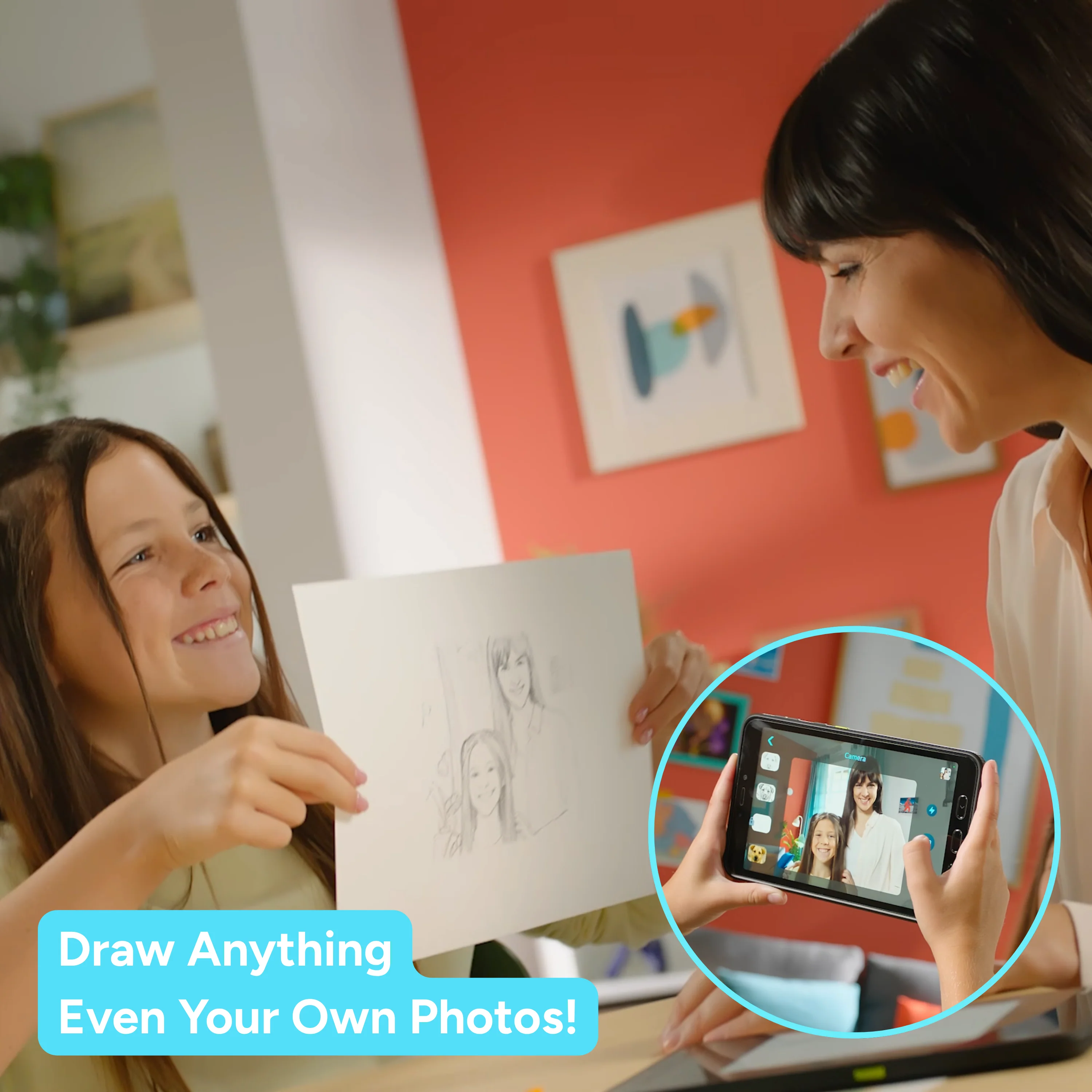 "It's amazing! She just says what she wants to draw and the projector makes it happen."